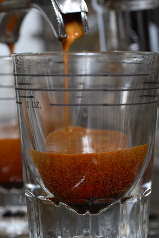 With the plumbers come and gone, the Giotto is now hard plumbed in to the mains. We are drinking softened water that has been charcoal filtered. The pump pressure was now showing close to 11 bars (up from 6.5 BAR pulling from a jug) and I dialed back the rotary pump adjustment screw (about half a turn counter-clockwise) to about 9.5 BAR.