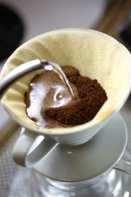 6.) ADDING THE REMAINING WATER. Here is where the Hario pour technique comes into play. The Hario buono kettle is built for a fine and a precise pour. Start from the center of the grind bed and work your way out - in concentric circles. I will place a link to a suitable video because it is way better than trying to explain it in text.